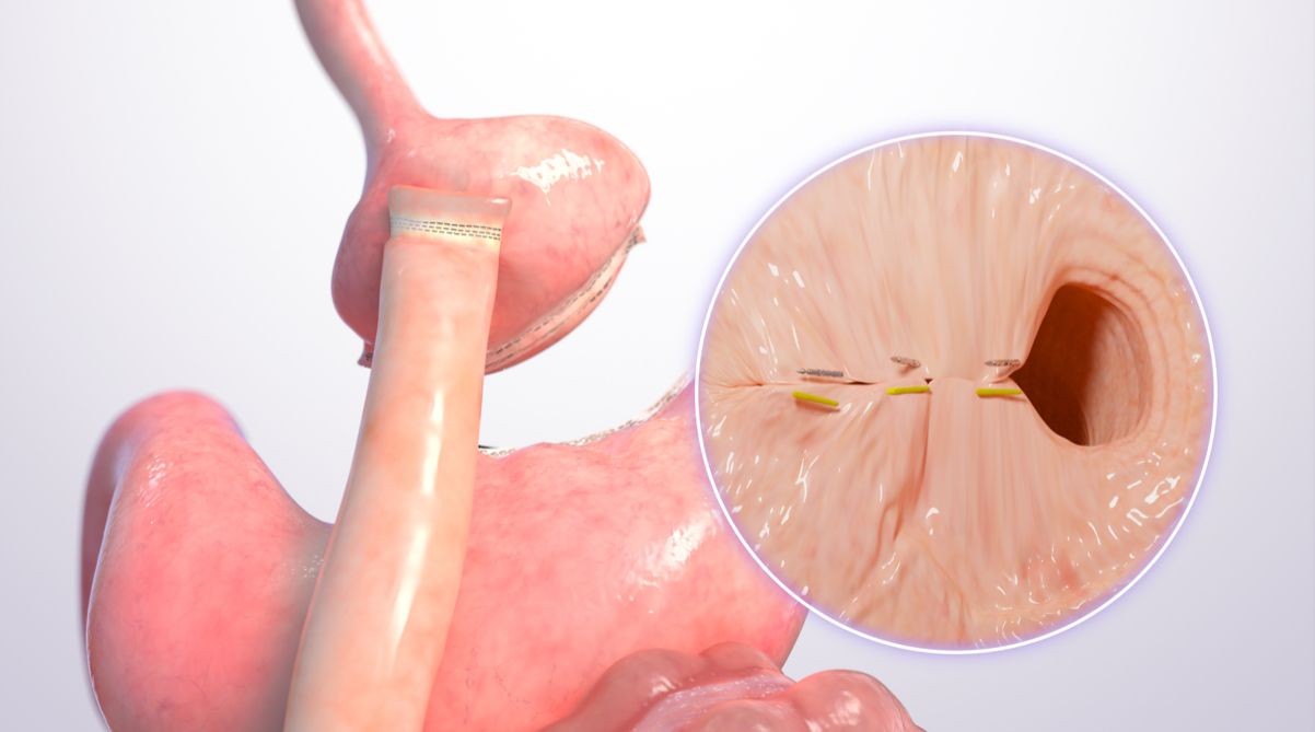•Utilization of a suturing device on the endoscope to tighten the opening to 8-10 millimeters.